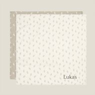 Een van de twee doeken kan volledig gepersonaliseerd worden met een naam, waardoor dit een uniek kraamcadeau met naam wordt. Personaliseer de doek met de voornaam van het kind of een korte liefdevolle boodschap om het cadeau nog specialer te maken.