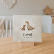 Met zijn frisse ontwerp en vriendelijke dinosaurus straalt de tegel warmte en speelsheid uit. Het past bij zowel een kraamcadeau jongen als een genderneutraal cadeau. De rustige kleuren harmoniëren met vrijwel elke babykamerstijl, van modern tot klassiek en van naturel houttinten tot vrolijke prints.