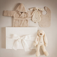 Een kraamcadeau dat zachtheid, kwaliteit en een persoonlijke noot samenbrengt in één stijlvolle verpakking. Liefdevol gekozen, met zorg samengesteld en altijd welkom.