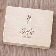 De eerste periode na een geboorte zit vol bijzondere momenten die ouders nooit willen vergeten. Van de eerste glimlach tot het eerste rompertje dat vaak wordt gedragen. Deze kleine details vormen later de mooiste herinneringen. Veel ouders bewaren daarom graag de eerste spulletjes uit deze periode. Met de Herinneringskist - Takje geef je een kraamcadeau dat speciaal bedoeld is om deze herinneringen een veilige plek te geven. De houten kist met een subtiel takje op de deksel heeft een rustige en natuurlijke uitstraling. Het ontwerp past perfect in een babykamer en staat symbool voor groei, nieuw leven en een nieuw begin. Dankzij de mogelijkheid om de kist te graveren met naam en tekst ontstaat een persoonlijk kraamcadeau dat jarenlang gekoesterd wordt. Het is een cadeau dat niet alleen mooi is om te geven, maar ook steeds waardevoller wordt wanneer er meer herinneringen worden verzameld.