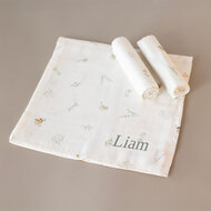 Eén van de drie Hydrofiele doeken - Lovely Birds - Jollein kan worden voorzien van een bedrukte naam. Dat maakt dit kraamcadeau niet alleen praktisch, maar ook persoonlijk. Een doek met de naam van het kind straalt warmte en aandacht uit – een detail dat het verschil maakt.