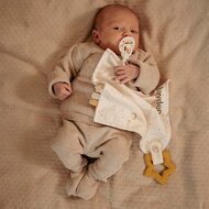Baby’s hebben van nature behoefte aan geborgenheid, rust en herkenning. Het knuffeldoekje met bijtring is daarbij een ideaal maatje. De zachte teddystof in aardse tinten sluit perfect aan bij het Newborn Naturals thema van Little Dutch. Deze zachte materialen geven het kindje direct een gevoel van comfort. Of het nu wordt gebruikt in de box, wieg of kinderwagen, het doekje is altijd binnen handbereik voor een momentje van troost of ontspanning.