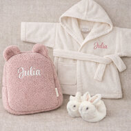 De rugzak van KCBoutique is hét pronkstuk van deze set. Met zijn zachte teddy stof en vrouwelijke kleurstelling is hij niet alleen handig, maar ook ontzettend lief om te zien. De rugzak is ideaal voor dagjes weg, logeerpartijtjes of een eerste dag naar het kinderdagverblijf. Dankzij de verstelbare schouderbanden en compacte maat is hij perfect afgestemd op peuters.