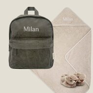 Een van de mooiste eigenschappen van het KC Boutique Forest Green pakket is de mogelijkheid tot personalisatie. Het borduren van de naam op de kinderrugzak of badcape voegt een bijzonder element toe dat het cadeau onderscheidt van standaard pakketten. Dit maakt het ideaal voor iedereen die een kraamcadeau zoekt dat echt persoonlijk en memorabel is.
