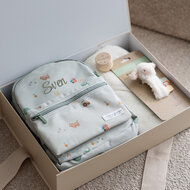 Het borduren van een naam of korte boodschap maakt dit pakket tot een origineel kraamcadeau dat zowel functioneel als emotioneel betekenisvol is. Elke keer dat ouders de rugzak of badcape gebruiken, wordt het gebaar van aandacht en zorg herinnerd, waardoor het cadeau een blijvende indruk achterlaat.