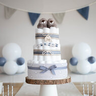 cadeau voor een kraambezoek of babyshower? Kies dan voor de luiertaart jongen in prachtige blauwe tinten. Alle luiertaarten die je bestelt bij kraam-cadeau worden zorgvuldig met de hand gemaakt en prachtig verpakt zodat jij het perfecte cadeau kunt overhandigen aan de aanstaande of kersverse ouders.