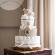 De luiertaart neutraal is voorzien van prachtige kraamcadeautjes. Afhankelijk van de maat ontvang je producten in zachte beige tinten. Onze luiertaarten worden gemaakt met de hoogste kwaliteit luiers - Pampers Premium Protect in maat 2. De luiertaart staat tijdens de kraamperiode niet alleen prachtig op de babykamer maar zorgt er daarna ook voor dat het kindje met comfort kan genieten van ieder moment.