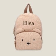 Deze rugzak is gemaakt van beige teddystof, zacht en knuffelbaar, met een speels voorvak in de vorm van een beer met lieve oortjes. Kinderen voelen zich er direct mee verbonden en vinden het geweldig om hun kleine spulletjes in deze tas mee te nemen. Of het nu gaat om een eerste uitstapje naar de kinderopvang, een dagje bij opa en oma of het begin van de eerste schooldag. Dankzij de mogelijkheid om de rugzak te borduren met de naam van het kindje, wordt hij een uniek, persoonlijk geschenk dat jarenlang gekoesterd wordt.