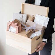 Personalisatie maakt dit pakket extra bijzonder. De herinneringskist kan worden gegraveerd met de naam van de baby, wat een uniek en blijvend aandenken creëert. Daarnaast kan de badjas tegen een meerprijs worden geborduurd, zodat ook dit item een persoonlijke touch krijgt.